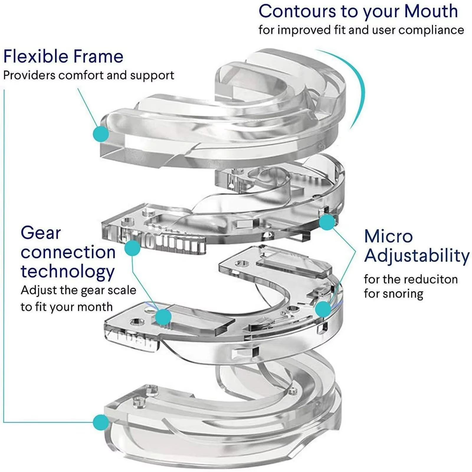 Simply mold the Bruxism Adjustable Mouth Guard to your teeth for a custom, comfortable fit. It gently positions your jaw forward to open your airway, stop snoring, and prevent teeth grinding—all while you sleep peacefully through the night.